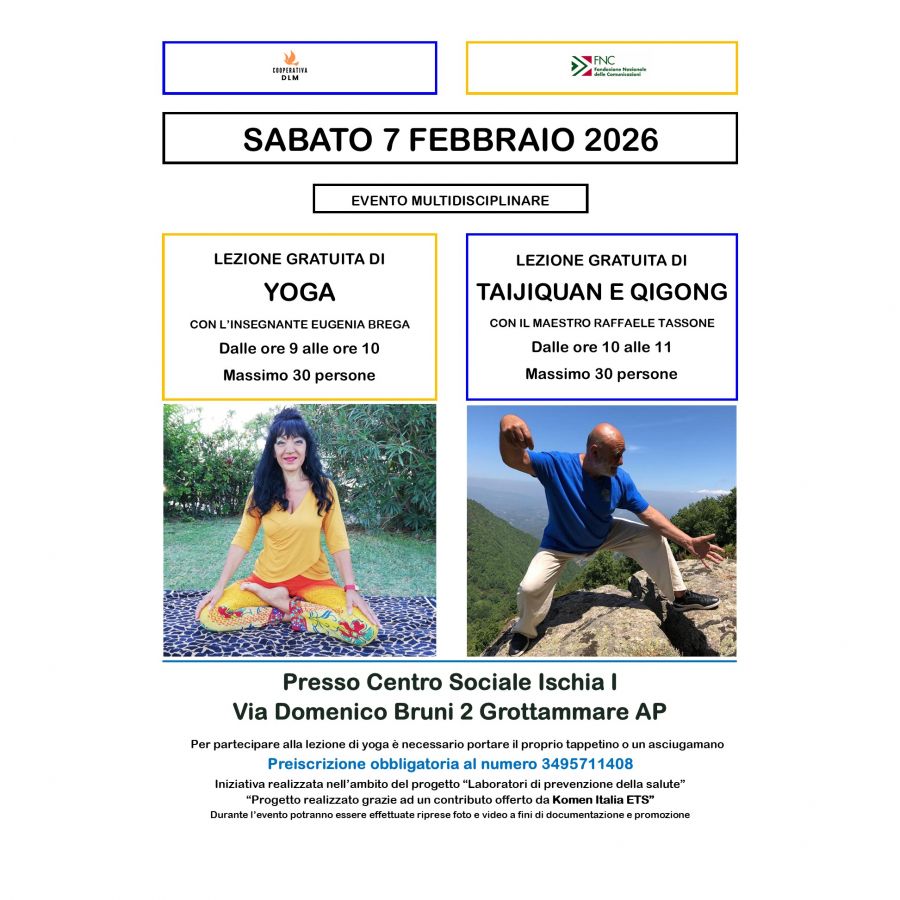 Sabato 7 febbraio a Grottammare si svolgerà un evento multidisciplinare. L'appuntamento è fissato dalle ore 9 alle ore 11 presso la sede del Centro sociale Ischia I in via Domenico Bruni 2 e sarà aperto a persone di tutte le età.