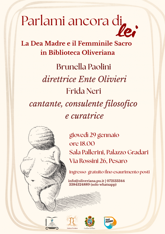 Parlami ancora di Lei. La Dea Madre e il femminile Sacro in Biblioteca Oliveriana, giovedì 29 gennaio alle ore 18.00 nella Sala Pallerini di Palazzo Gradari a Pesaro