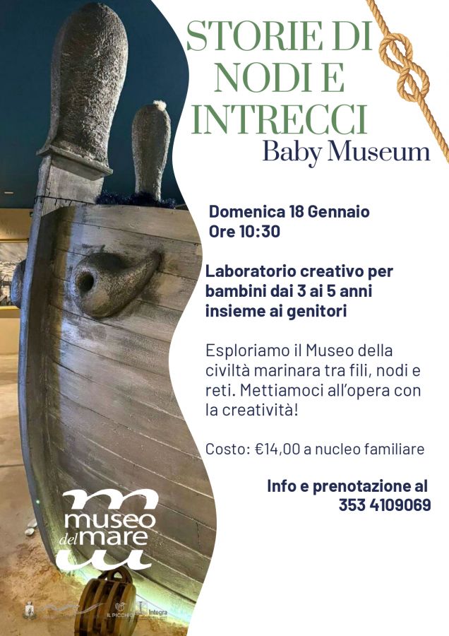 STORIE DI NODI E INTRECCI - Baby Museum 18 gennaio, ore 10:30 Lettura e laboratorio creativo per bambini e bambine dai 3 ai 5 anni accompagnati dai genitori.