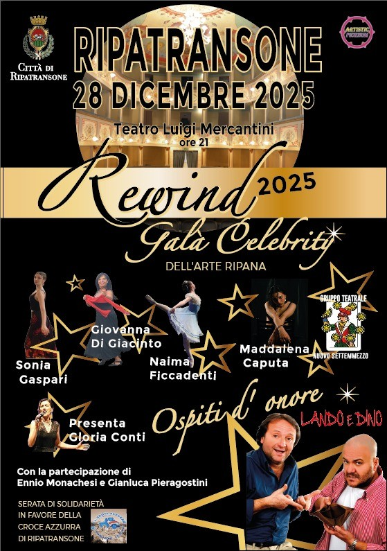 GALA' CELEBRITY DELL'ARTE RIPANA CON LANDO E DINO - RIPATRANSONE TEATRO MERCANTINI 27 DICEMBRE INFO IN LOCANDINA.