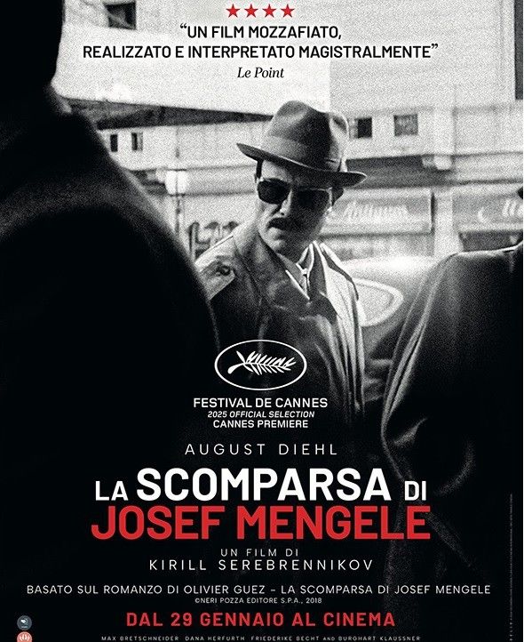MERCOLEDI' 28 GENNAIO il Cineforum torna al Cinema Teatro Concordia con un nuovo ciclo di proiezioni che raccoglie alcuni dei migliori autori del panorama cinematografico internazionale. Il primo appuntamento è con un film che, in occasione del giorno della memoria, ci invita a ricordare ed a riflettere ancora sulla immane tragedia della Shoah: LA SCOMPARSA DI JOSEF MENGELE di Kirill Serebrennikov, presentato al Festival del Cinema di Cannes 2025.