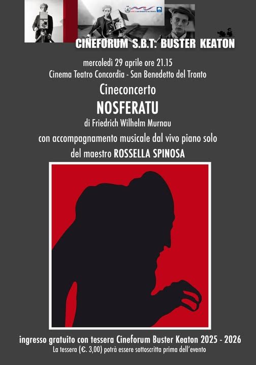 CINECONCERTO "NOSFERATU" di F.W. Murnau. Dopo il successo dello scorso anno, torna il CINECONCERTO con il Maestro ROSSELLA SPINOSA che accompagnerà al pianoforte il NOSFERATU di F.W. Murnau