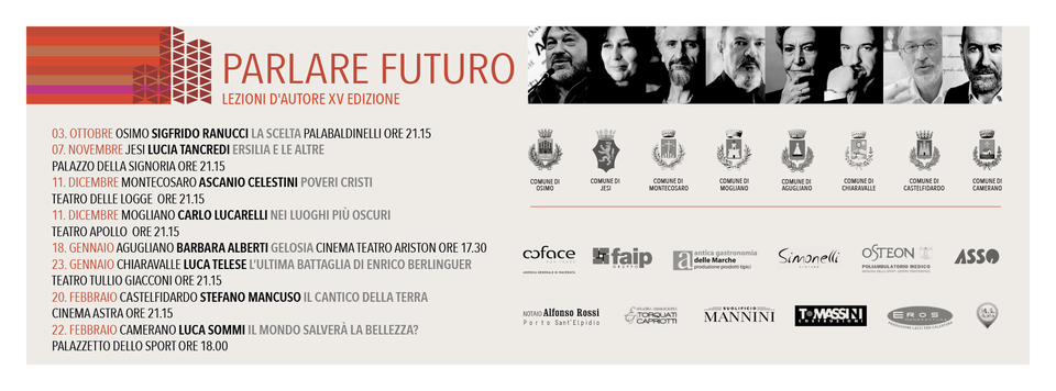 Ciclo d'incontri con i migliori intellettuali italiani nei vari campi, filosofia, architettura, storia, psicoanalisi, economia. INFO E PROGRAMMA IN LOCANDINA