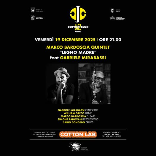Vi aspettiamo il prossimo venerdi 19 Dicembre per farci gli auguri di buone feste con lo strepitoso concerto del Marco Bardoscia Quintet con la featuring del clarinettista Gabriele Mirabassi!