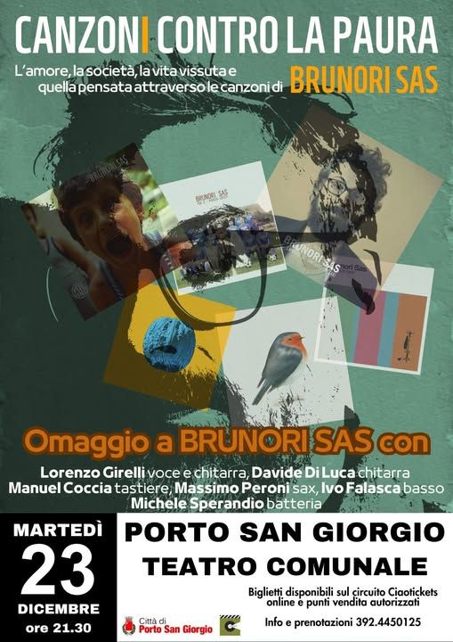 “Canzoni contro la paura” è il nuovo concerto-spettacolo del collettivo musicale Fra Luna e Mare dedicato alle canzoni di Brunori Sas, artista capace come pochi di raccontare la vita di tutti i giorni con ironia, poesia, leggerezza, scanzonata malinconia e soprattutto autenticità.