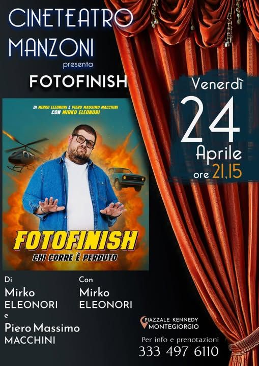 FOTOFINISH, TEATRO MANZONI MONTEGIORGIO, 24 APRILE. Ancora un venerdi dedicato alla comicità. Ingresso unico 10 eur. Per info e prenotazioni numero in locandina.