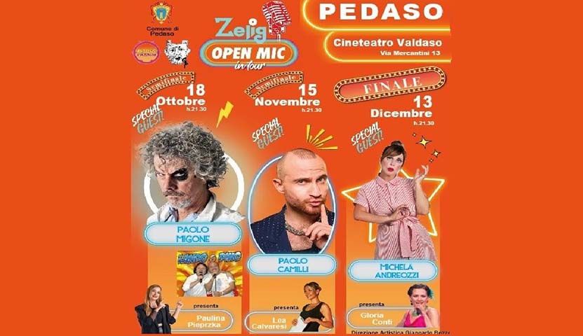 Terza edizione dello Zelig Open Mic, contest dedicato al panorama emergente comico italiano, che farà tappa al Cineteatro Valdaso nell'autunno pedasino.