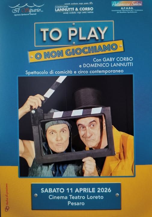 Nuovo appuntamento con la comicità, "TO PLAY O NON GIOCHIAMO", a cura dell’Agenzia Teatrale Il Sipario. Il doppio appuntamento è per sabato 11 aprile al Cinema Teatro Loreto di Via Mirabelli, 3 a Pesaro.