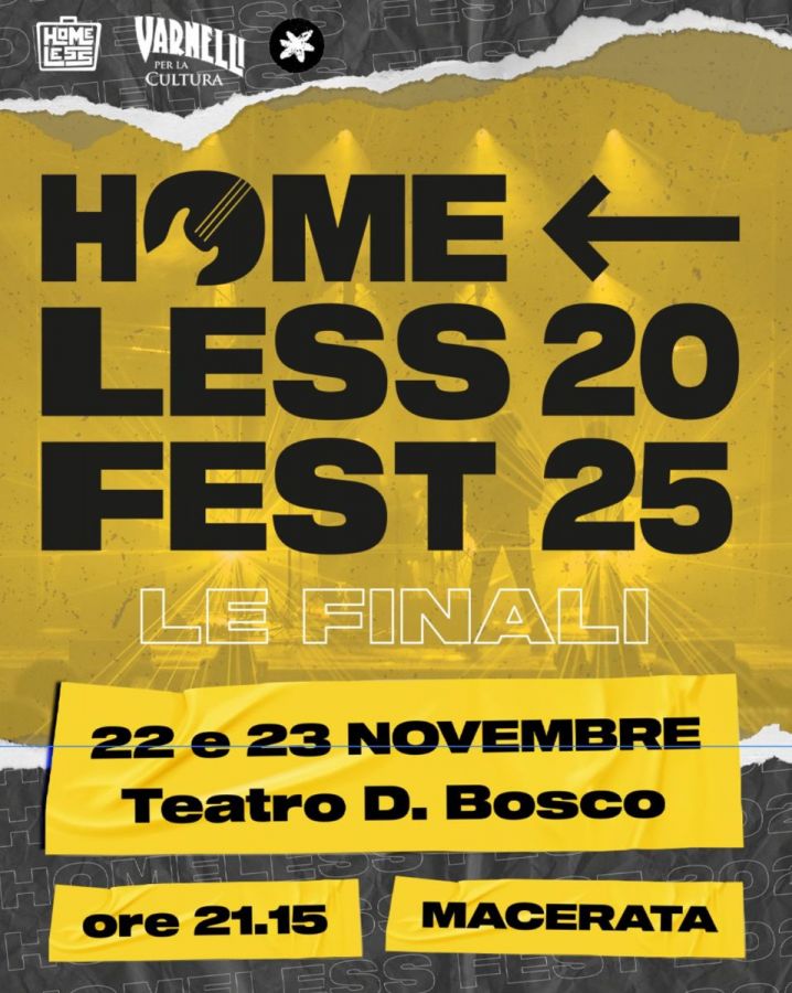 Sabato 22 novembre (semifinale) e domenica 23 novembre 2025 (finale), il Teatro "Don Bosco" di Macerata ospiterà le serate conclusive della XIX edizione di Homeless Fest, il concorso musicale dedicato ad artisti emergenti, organizzato dall'Associazione Homeless. Le due serate, con inizio alle ore 21:15, saranno a ingresso gratuito.