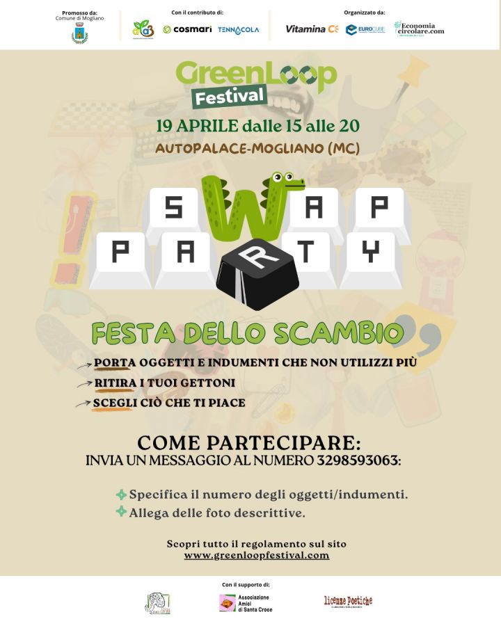 Il 19 aprile, dalle 15:00 alle 20:00, ti aspettiamo a Mogliano per una vera e propria festa dello scambio: porta ciò che non usi più e scopri nuovi oggetti da portare a casa