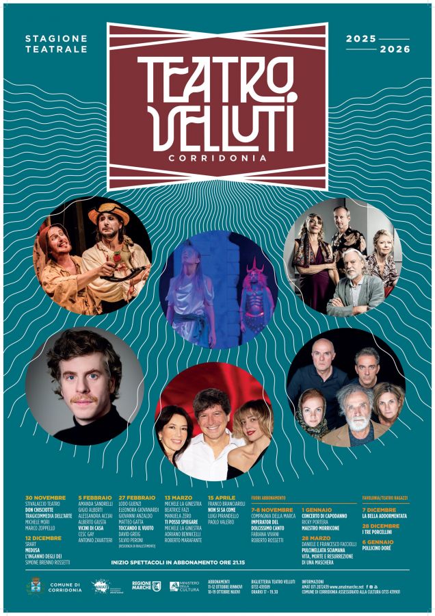 Sei titoli del miglior teatro italiano in abbonamento, più un trittico di spettacoli domenicali per i piccoli e altrettanti appuntamenti fuori abbonamento, fra cui il tradizionale Concerto di Capodanno. È la nuova stagione delTeatro Velluti di Corridonia proposta da Comune e AMAT, con il contributo di MiC e Regione Marche e presentata ufficialmente oggi dal sindaco Giuliana Giampaoli con l’assessore alla cultura Massimo Cesca e insieme a Daniela Rimei dell’ufficio promozione AMAT.