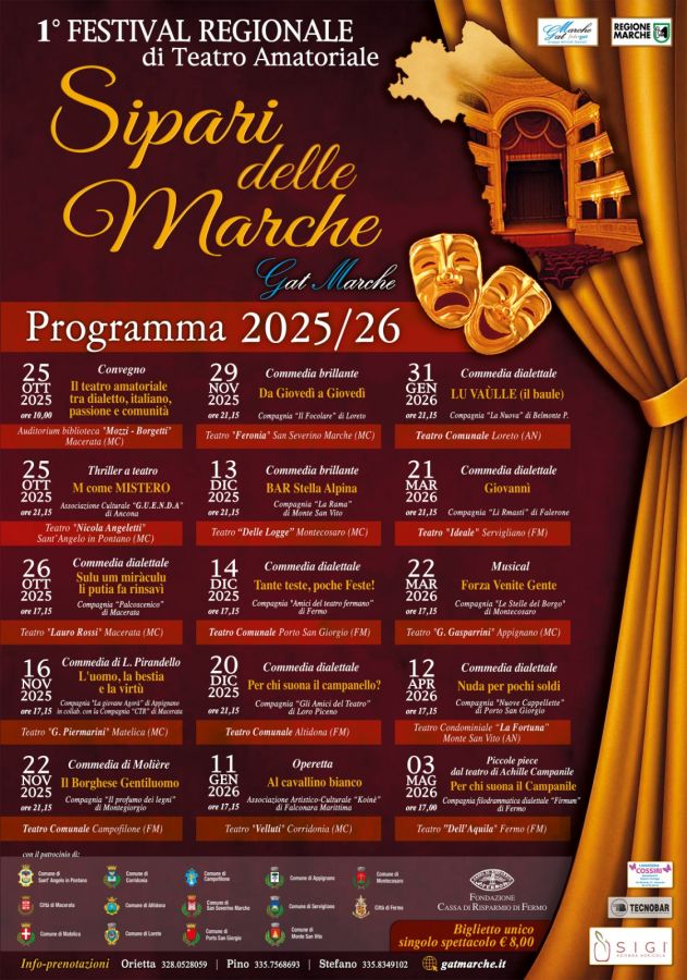 Dal 25 ottobre al 3 maggio in scena "Sipari delle Marche", un evento che celebra la passione e la creatività di un’arte senza confini. PROGRAMMA IN LOCANDINA