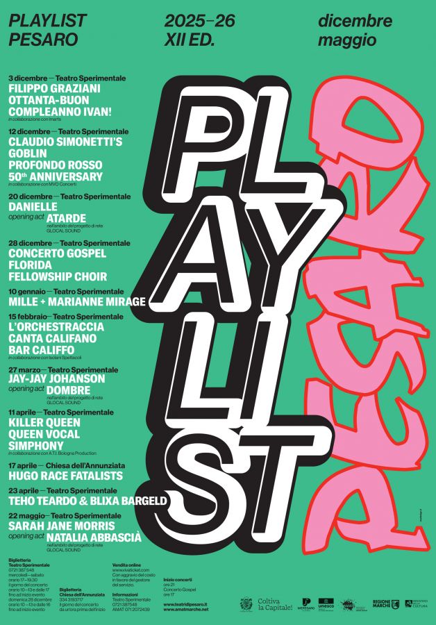 40 appuntamenti per 10 spettacolida ottobre 2025 ad aprile 2026 per la nuova stagione del Teatro Sperimentale di Pesaro promossa dal Comune con l’AMAT e realizzata con il contributo della Regione Marche e del MiC.