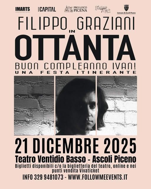 Un viaggio nella musica, nei ricordi e nell’anima di un grande artista. Il Teatro Ventidio Basso di Ascoli Piceno accoglie Filippo Graziani con OTTANTA – Buon Compleanno Ivan!, una festa itinerante per celebrare gli 80 anni dalla nascita di Ivan Graziani.