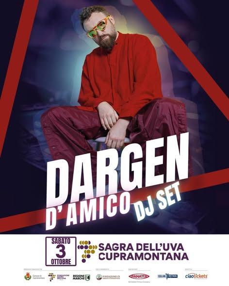 La Sagra dell’Uva di Cupramontana si prepara alla sua 89° edizione e annuncia il primo grande appuntamento musicale in programma: sabato 3 ottobre 2026 saliranno sul palco Dargen D’Amico e Giorgio Prezioso.