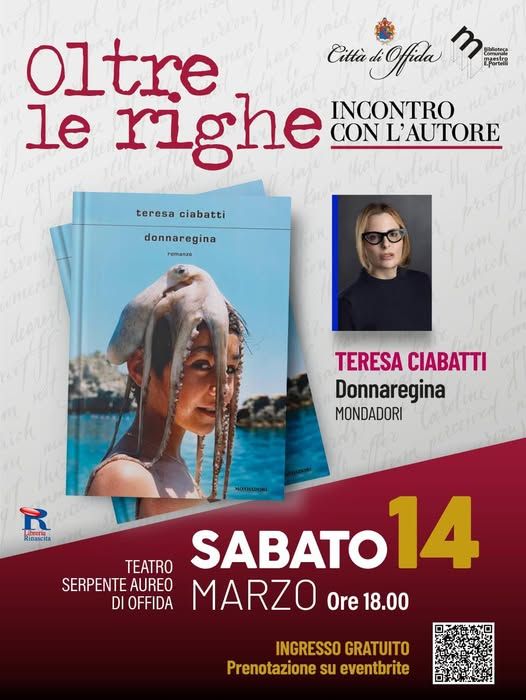 Scrittrice e sceneggiatrice capace di trasformare l’autobiografia in una letteratura tagliente, spiazzante e profondamente umana, 𝗧𝗲𝗿𝗲𝘀𝗮 𝗖𝗶𝗮𝗯𝗮𝘁𝘁𝗶 incontra il pubblico per presentare il suo nuovo romanzo 𝗗𝗼𝗻𝗻𝗮𝗿𝗲𝗴𝗶𝗻𝗮 (Mondadori), nell’ambito della rassegna “𝗢𝗹𝘁𝗿𝗲 𝗹𝗲 𝗿𝗶𝗴𝗵𝗲”. Finalista al Premio Strega 2017 e firma di importanti testate nazionali, Ciabatti ha costruito una carriera riconoscibile e coraggiosa, sempre in bilico tra confessione e provocazione.